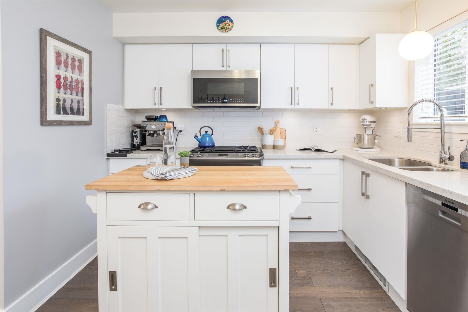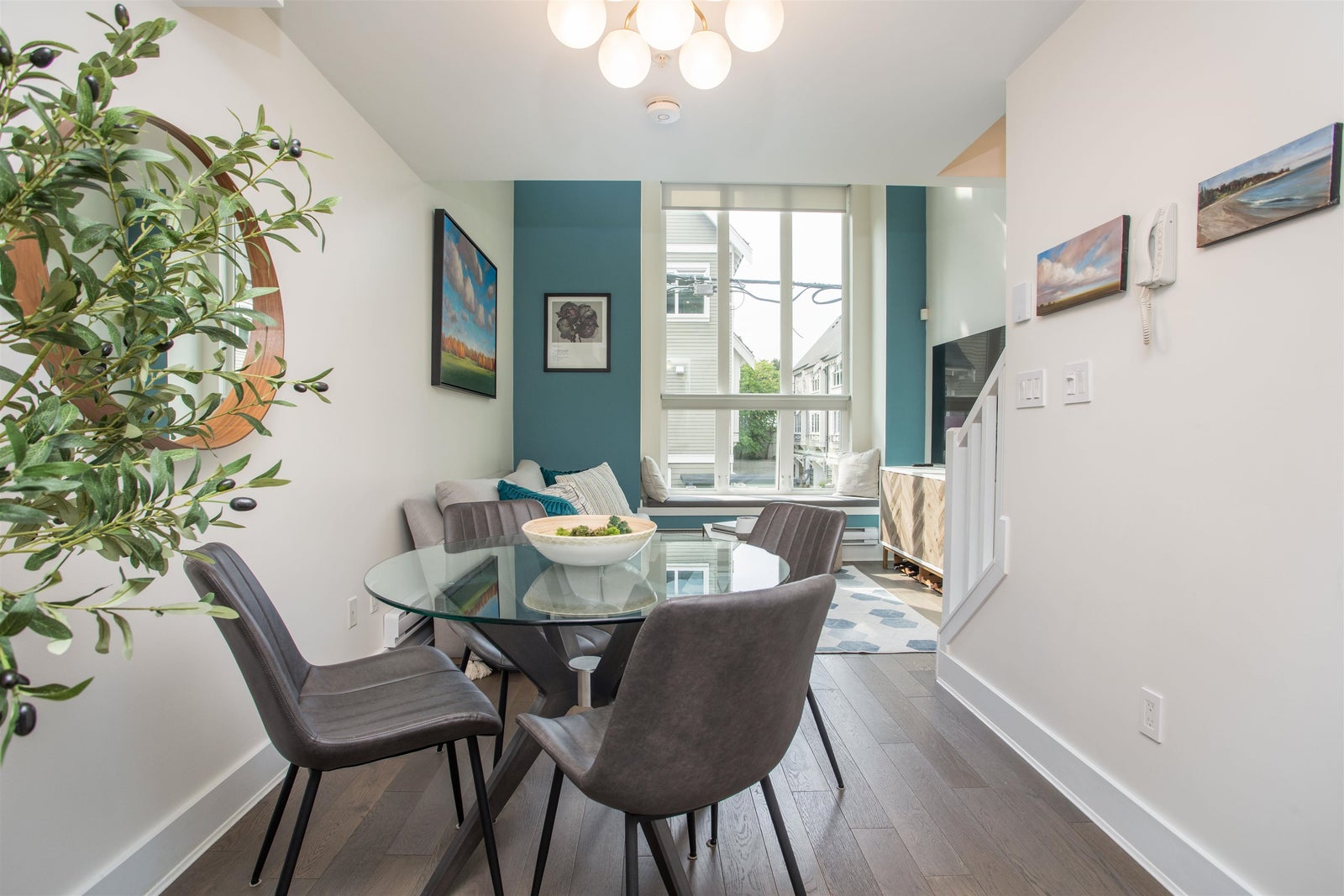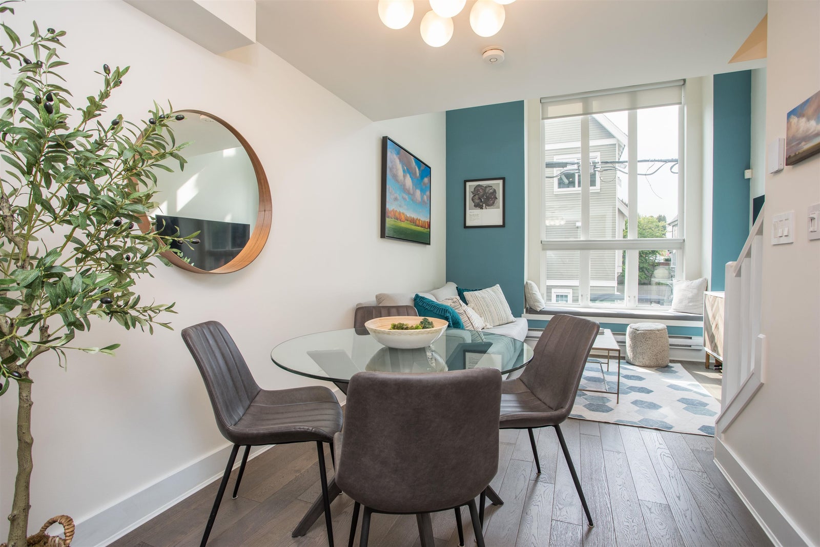 Light-filled, stylish, and rare, this 3-level 2 bed + den, 3 bath townhouse at The O2 offers boutique living in the heart of Cedar Cottage. Quietly set at the back of this 5-home collection, the bright, open main floor features soaring 17’ ceilings, expansive windows, and a gourmet kitchen with quartz counters, S/S appliances, and custom cabinetry. Upstairs has a bedroom with built-ins, full bath, and a versatile den perfect as a home office or nursery. The top floor is a private primary retreat with ensuite and a spacious west-facing rooftop patio perfect for unforgettable sunsets. With multiple outdoor spaces, smart design, and a prime location steps to Trout Lake, Farmers Market, SkyTrain, and Commercial Drive, this home is a true standout. One Secured Parking and One storage shed.